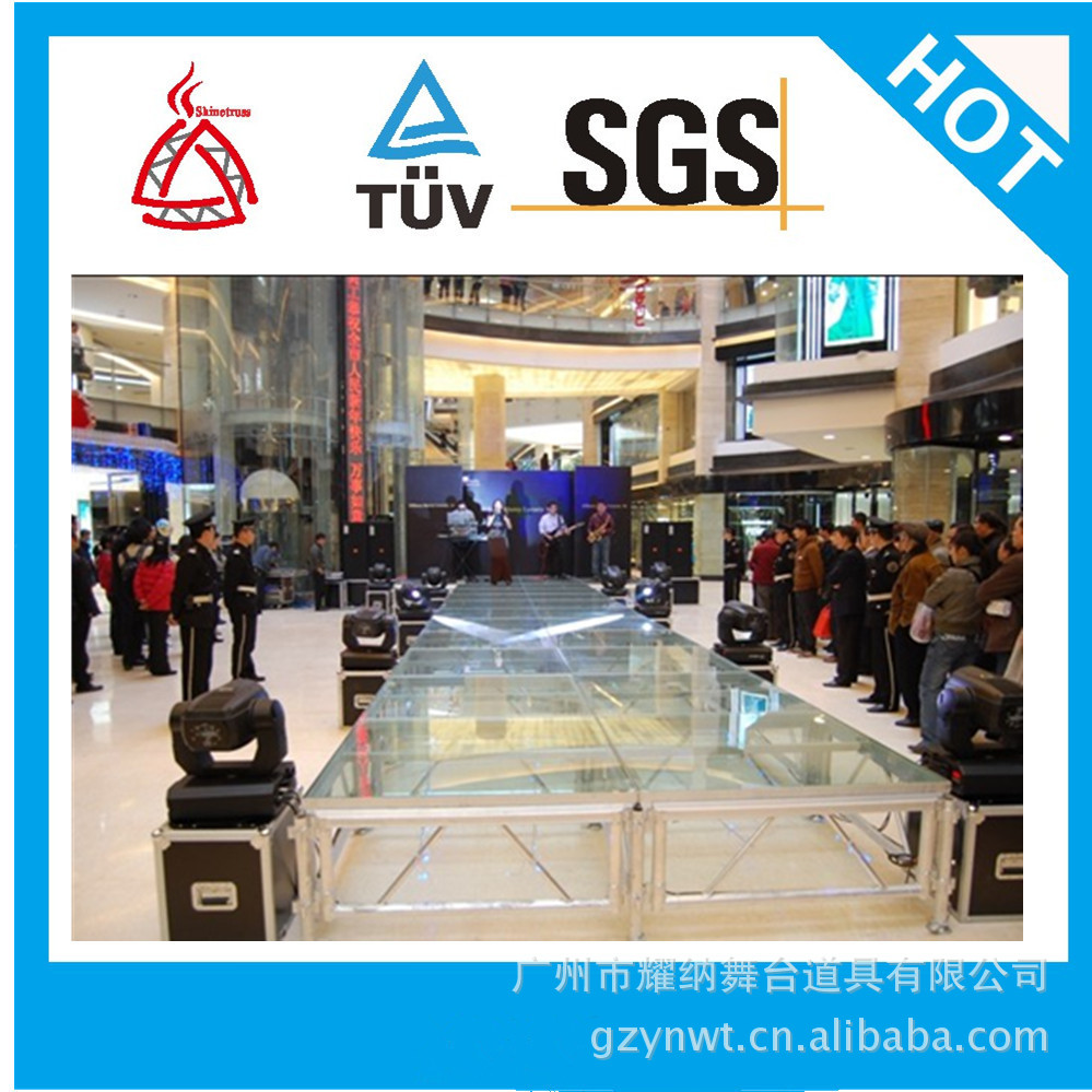 弧形玻璃舞台说明:由支架,立柱,伸缩管,可调节底座,舞台板组合而成。每张舞台和相邻的舞台的立柱和支架是共用的,所以连接好后是一个整体非常牢固。拆装和安装方便,其舞台面是由有机玻璃或者钢化玻璃与铝框构成,其具有较好的防火阻燃、耐磨损、无伤害、装饰性强等特点,舞台框采用高硬度铝合金材料,结构牢固。库存占空间不大,容易存储。使用于演出,开会,庆典等活动。