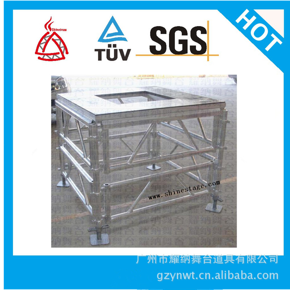 拼装舞台,由支架,立柱,伸缩管,可调节底座,舞台板(多层夹板或防水竹板面)组合而成。每张舞台和相邻的舞台的立柱和支架是共用的,所以连接好后是一个整体非常牢固。拆装和安装方便,其舞台面是由胶片或钢化玻璃以及多层夹板与铝框构成,其具有较好的防火阻燃、耐磨损、无伤害、装饰性强等特点,舞台框采用高硬度铝合金材料,结构牢固,外观漂亮.具有牢固稳定性好、外形美观、拆装简便、运输方便、承重量大等特性