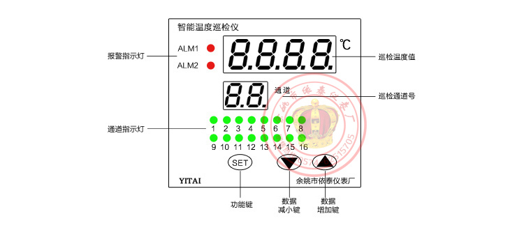 XMD-16烘房烤房烤箱烘箱高精密仪器设备角落四周温度巡检仪