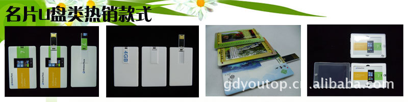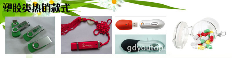 YOUTOP友拓U盘诚邀各类商家定制: 友拓数码专业生产各类U盘,产品线丰富(礼品U盘、 广告U盘、U盘笔、加密U盘、卡片U盘、金属U盘、钻石U盘、皮套U盘、木质U盘、硅胶U盘、旋转U盘,迷你U盘,手腕U盘等等),产品通过了国家技术监督局检验合格和中国质量万里行质量认证。 我司提供的产品服务有: 1,特色礼品 广告U盘:除在U盘盘体印制LOGO外,U盘芯片内可固化 企业的广告宣传片(视频、文档、图片等)自动播放增值服务,广告内容直接嵌入芯片,使用者无法删除,真正做到由内到外个性定制。用户每天都接触U盘,日益久远,记忆深刻,U盘 的使用寿命长,等于企业花了一次钱,做了几年的广告,一次投放,品牌宣传效果永久。 2,承接各类OEM/ODM,可根据客户要求定制LOGO(激光,喷绘,丝网印刷,雕刻,高频压印等工艺)个性化产品LOGO定做。作为商务礼品,展会礼品,电子礼品,会议礼品,单位办公用品,员工福利礼品,促销活动品,与其他产品绑定销售赠送等,应用范围广泛。 可选包装:礼品盒/马口铁盒/小纸盒/透明PP盒/吸塑包装/OPP袋/等。 付款方式:先付定金30%,货做后好通知贵公司付70%的余款,一切以款到帐为准。 售后服务:产品均一年保修(除人为损坏)。 温馨提示:以上价格仅为套料价,由于芯片价格时常变动,下单以当天价格为准,代办托运,货运费需另计,报价为不含税价,开票费另计,如有浮动,恕不另行通知。 YOUTOP友拓风采与介绍