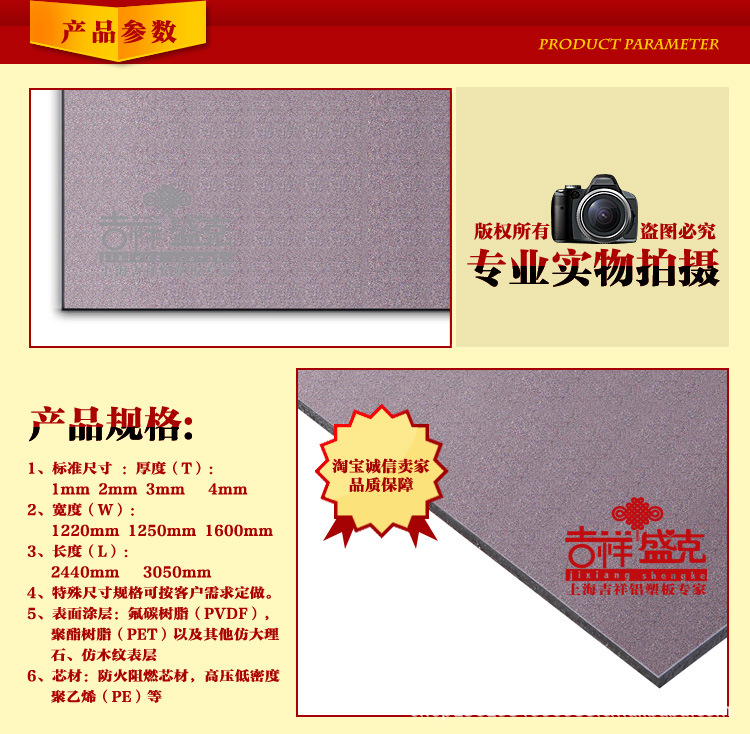 吉祥盛克厂家直销/3mm紫色外墙 内墙幕墙广告铝塑板