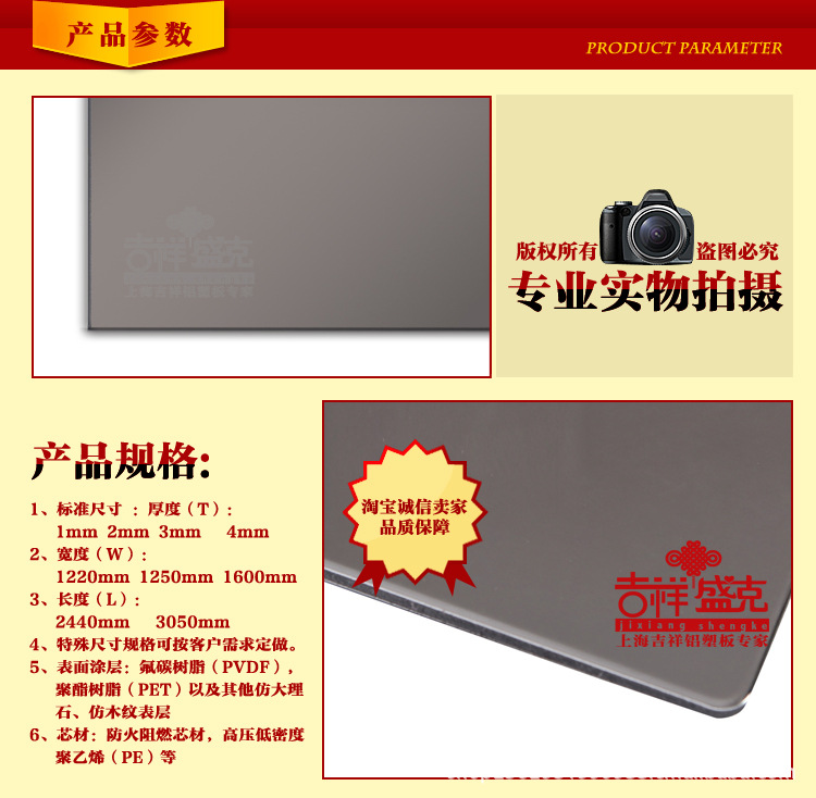 吉祥盛克厂家直销/3mm中国红/外墙 内墙幕墙广告铝塑板