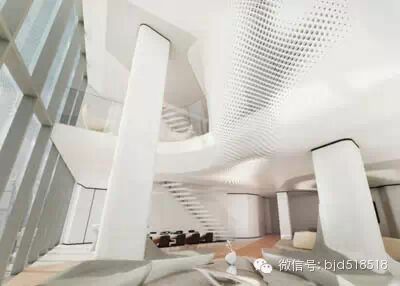 整个酒店的建筑设计与室内设计全部由扎哈·哈迪德建筑事务所承担,整个酒店的室内设计延续了建筑设计风格,大堂的中空更使用了充满雕塑般的造型设计,像极了篇幅侠。客房的设计选择了带有极强的未来感,让人充满遐想。