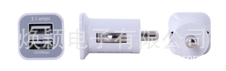 产品参数:材质:PC输入电压:12V-24V DC输出电压/电流:5V3.1AUSB接口:一端输出2.1A,一端输出1A电源方式: 点烟器式可充设备:IPONE、PSP、MP3、MP4、手机等USB线可接入的移动数码设备、通信技术设备、5V输入电源设备等