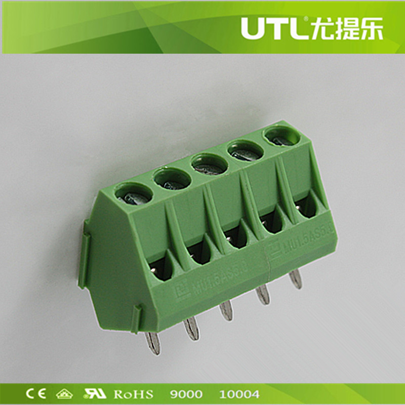 欧式接线端子(MU Series) 是可焊接到印制线路板(PCB板)应用最广泛的产品之一,升降连接原理螺钉的相对位置不动,靠螺钉的转动提升压线方块将导线压紧。