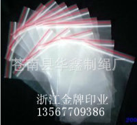 备注:1、以上规格均有现货,双面厚度6--8丝,欢迎选购。 2、可根据客户的要求订制各种非标准尺寸。 3、以上均为全新料生产,可打孔(打眼)、印刷等。 4,、地址温州钱库工业区,电话:13567709386 旺旺:chenqixiang2008 公司网站: 官方网站:/ 移动旺铺: 欢迎来样定做。电话:13567709386陈先生 18968746818林女士 商务QQ:710733440 细节决定成败,质量决定生命;凭竞争谋生存,靠创新求发展! 苍南县华鑫制绳厂 旗下子公司---中国金牌塑业,位于温州市苍南县钱库工业区 是专业从事制袋、制卡、注塑、印刷等业务,生产凹凸扣自封袋 骨袋 拉链袋兼吊牌 彩卡 印刷一条龙服务,公司秉承“顾客至上,双利双赢”的经营理念,以“质量第一,锐意进取”的工作态度,力求向顾客提供一流的产品质量,一流的服务质量,保证客户满意。业务QQ:710733440 电话:13567709386