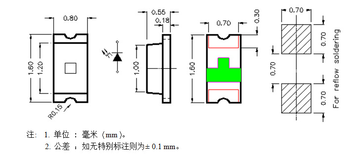2.4如果水分吸收性材料(硅胶)已经消失了或发光二极管有超过了存储时间、烘干处理应采用下列条件。 烘干处理:60±5℃12小时。
