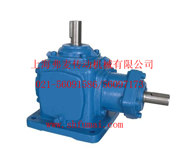 1、T系列一级螺旋锥齿轮减速箱,标准化,多品种, 速比1:1、1.5:1、2:1、2.5:1、 3:1、4:1、 5:1 全部为实际传动比。平均效率98%。