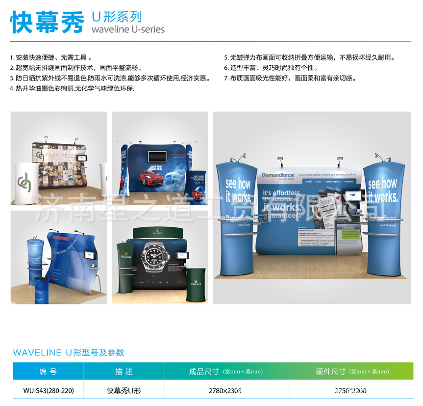 型材结构图片画面安装图片同时推出新品---快幕秀采用6063-T5国标铝锭挤压型材,铝合金冲压成形角码连接。