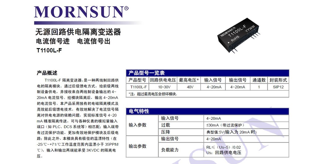 隔离变送模块--电磁隔离技术,输入、输出和电源间相互隔离