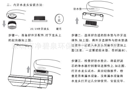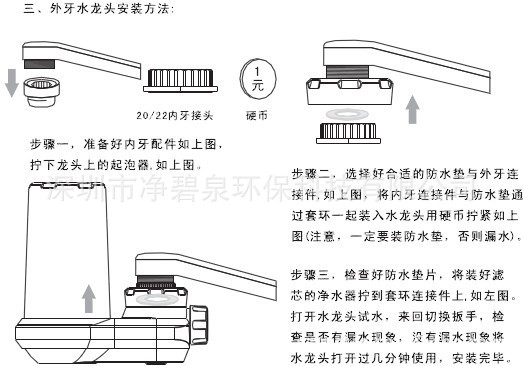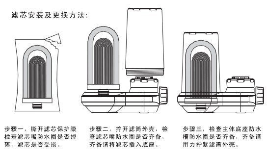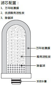 产品特征:1、该产品滤芯采用万年硅藻土高温烧制而成,内配优质椰壳活性炭与除氯球,让滤芯过滤更彻底。2、该产品滤芯采用双防水圈防水,进一步提高了净化水的安全性。3、该产品采用三出水方式,有效提高节水功能与使用方便性。4、该产品滤芯直插式设计,更换更为方便。5、适用于不同的水龙头安装。