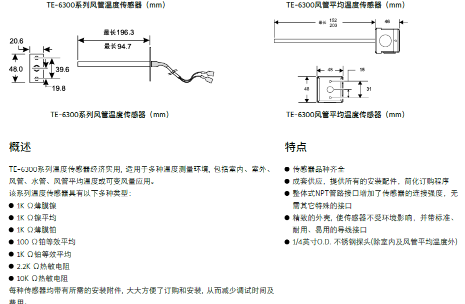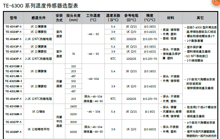 TE-6311 正品 行货 传感器 美国江森 温度传感器