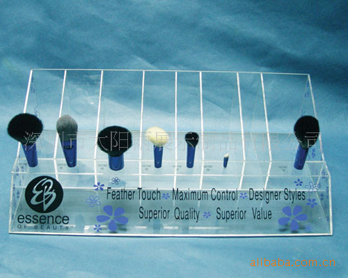 此系列的展示架适合摆放化妆品工具,如腮红刷、眼影刷、睫毛刷等。我们的产品多样话,有摆放整套化妆刷的,有只针对眼部、唇部的。可根据顾客需要增加或减少功能。