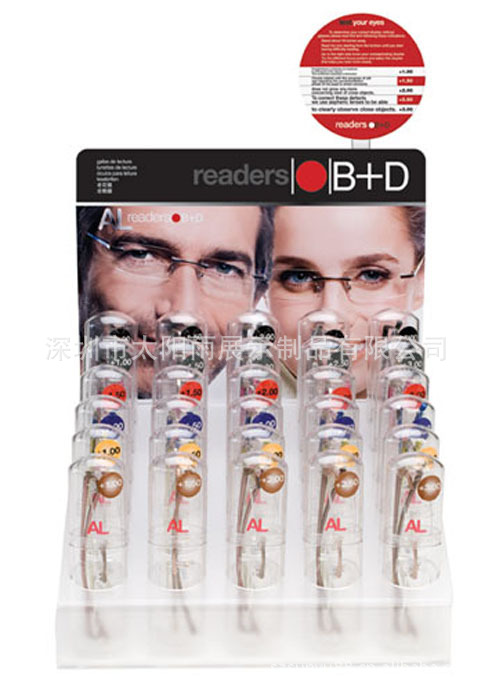 此款展示架采用的是3mm亚克力透明板粘接而成,开料后经过抛光、锣边、丝印、雕刻后再粘接而成的。