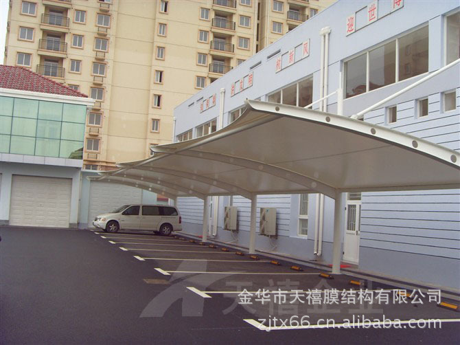 天禧膜结构使用寿命及特点:膜结构车棚的篷布材质是膜结构,而膜材的最大特点是强度高、耐久性好、防火难燃、自洁性好,不受紫外线影响,使用寿命长,一般15-30年。具有高透光率,透光率为13%,对热能反射率73%,热吸收量很少。正是因为这种划时代的膜材料的发明,使膜结构车棚成为现代化的永久建筑。