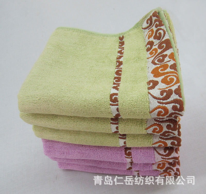 RYT-2005 生产厂家直销 30*66cm竹报平安竹纤维缎档面巾