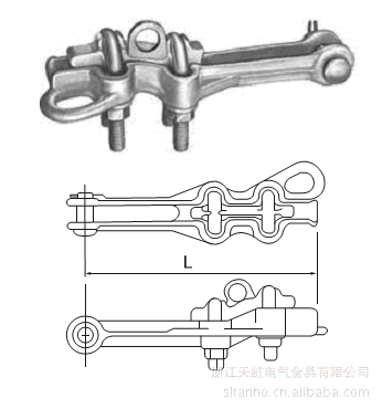 耐张线夹主要用于架空电力线路或变电所,变电站。固定导线和避雷线,并通过联结金具与耐张绝缘子相连或将避雷线与杆塔相连。