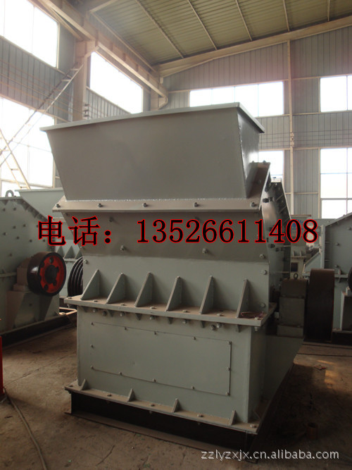 该机械为连续作业式设备,工作时,在电机的带动下,转子高速旋转,物料进入第一破碎腔破碎,与转子上的板锤撞击破碎,然后进入第二细碎腔进行粉碎,最后在出料口排出。