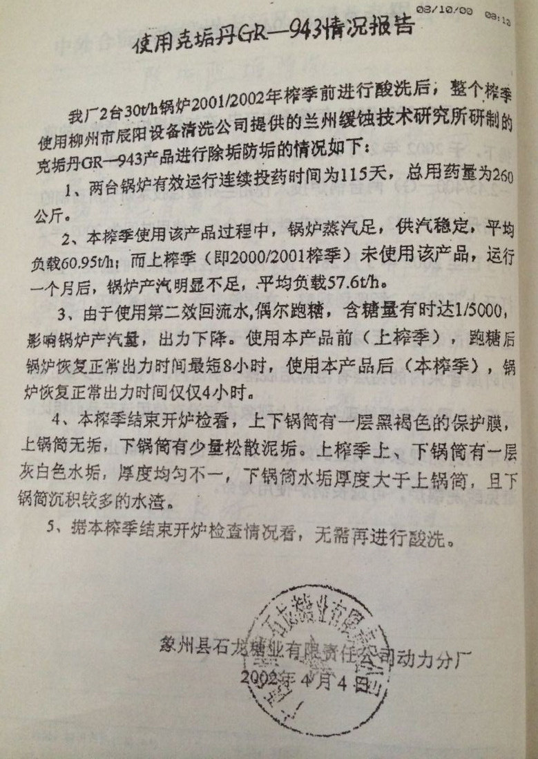 ■格瑞GR-201克垢丹实现锅炉无垢运行