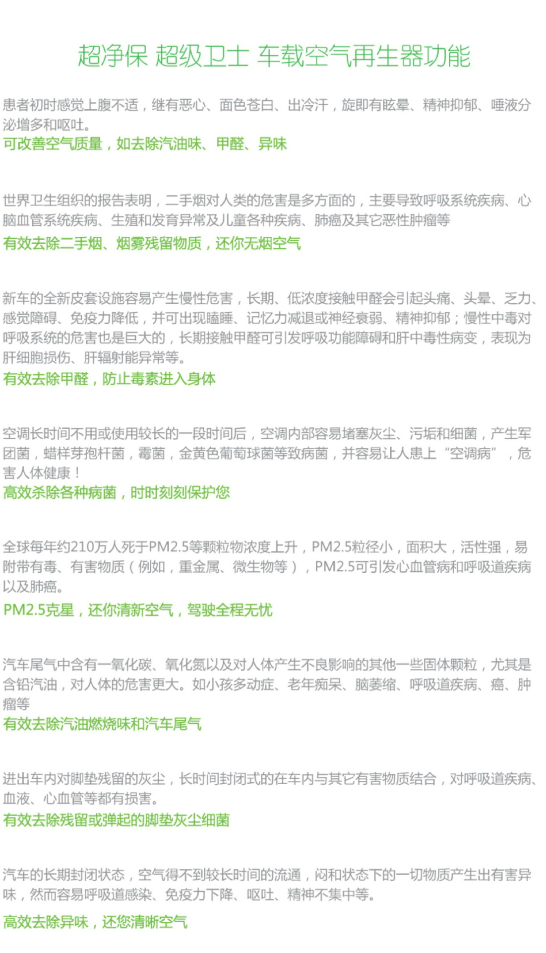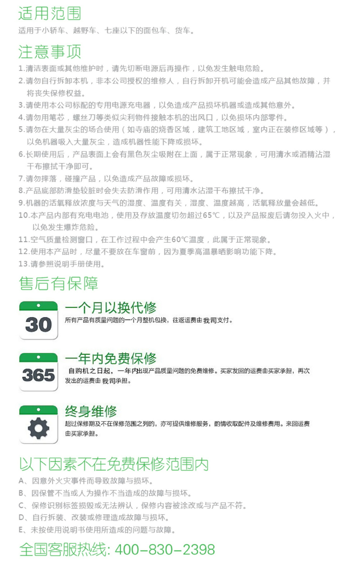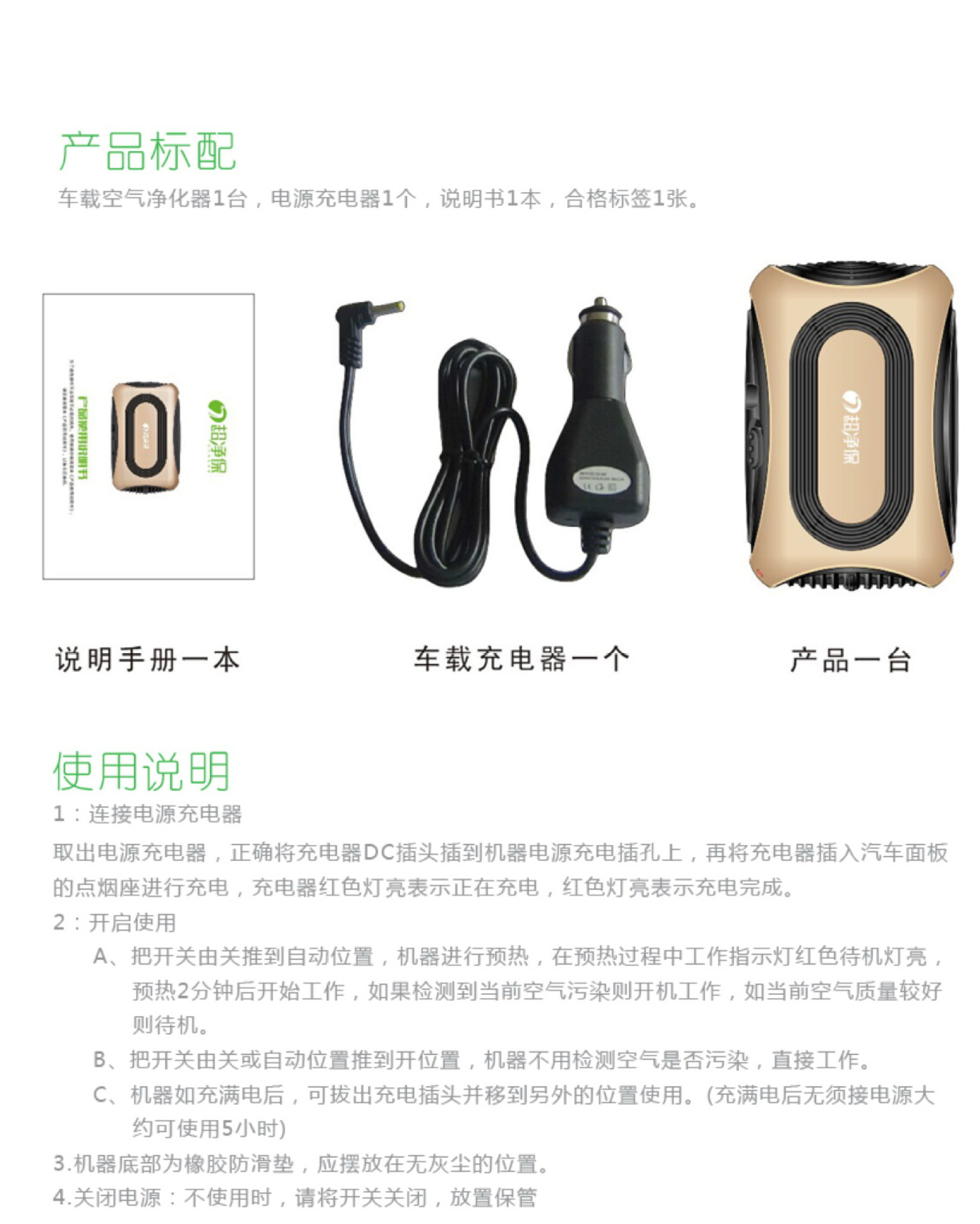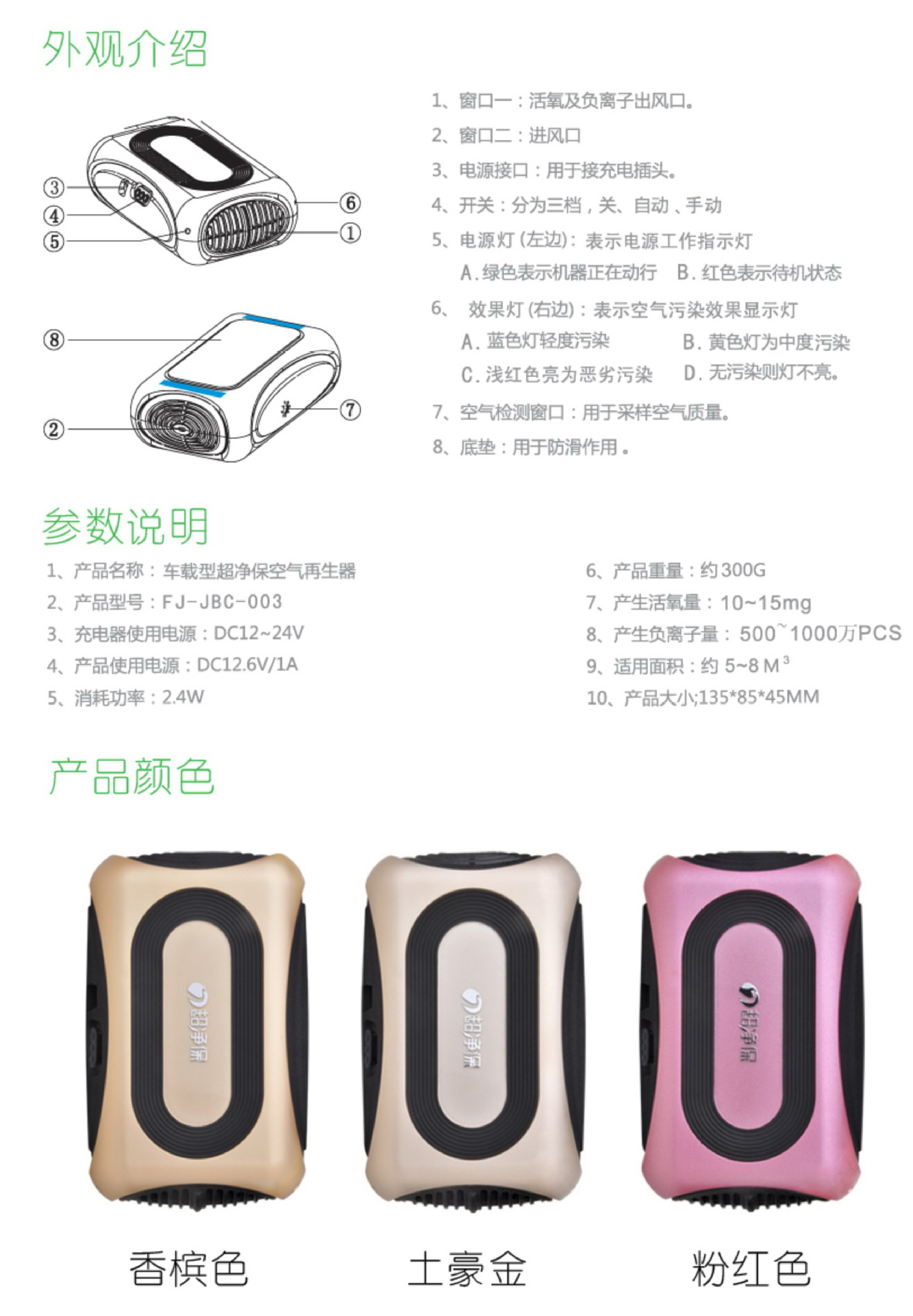 产品名称:超净保车载空气再生器 产品型号:FJ-JBC-003