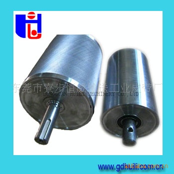 英译名:roll,roller 滚筒为圆柱形的零件,分驱动和从动辊。广泛应用于如圆网印花机、数码打印机,输送设备,造 纸和 包装机械等各类传动输送系统中。通常采用无缝钢管制成,也有视不同工艺需要采用诸如铝合金6061T5,304L/316L不锈钢,2205双相不锈钢,铸钢件,实心锻打合金钢芯为材料的。 滚筒的生产主要有辊体初车、初校静平衡、轴头过盈装配焊接、精车和精校动平衡等工序组成。若对行为公差如圆度、圆柱度和直线度等要求在0.2mm以下的,则在精车后需要上外圆磨床或轧辊磨床磨削加工。对表面硬度有要求的,则需要增加热处理工序。 滚筒成型后,出于防锈防腐、耐磨和支撑的需要,还需要表面处理或包覆如喷漆、镀锌、TEFLON喷涂、包橡胶、镀铬、陶瓷喷涂和氧化等工序。 按尺寸来分类,有大型的如造纸机械用辊筒(长度可以达到10米以上,直径在1500mm以上),有小型的如自动流水线上皮带输送上用的平托辊(一般在1米长以内) 度以内,直径也在159mm 按作用来分,有要保证传递精度的如数码激光打印机上的辊筒,有起压滤作用的如造纸机械上的压光辊,有对尺寸精度要求不高的支撑用托辊,有热交换要求的辊筒,也有起重型压滤作用的辊筒等,不一一列举。 滚筒直径选择:25mm、32mm、38mm、42mm、50mm、57mm、60mm、76mm、80mm、89mm。 滚筒材质选择:碳钢镀锌、碳钢镀铬、碳钢包胶、铝合金、不锈钢、ABS等。辊筒类型选择:无动力辊筒、单链辊筒、双链辊筒、“O”带辊筒、锥形辊筒、槽型辊筒。辊筒固定方式:弹簧压入式、内牙轴式、全扁榫式、通轴销孔式。