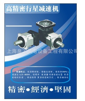 ID系列精密行星齿轮减速机系列:为法兰盘输出设计。型号分:ID40、ID60、ID90、ID120、ID160机座型号。速比:1-1000有200多个比速可选择;分一、二、三级变减速传动;精度:一级传动精度在6-8弧分,二级传动精度在8-10弧分,三级传动精度10-15弧分;等1000多种规格。