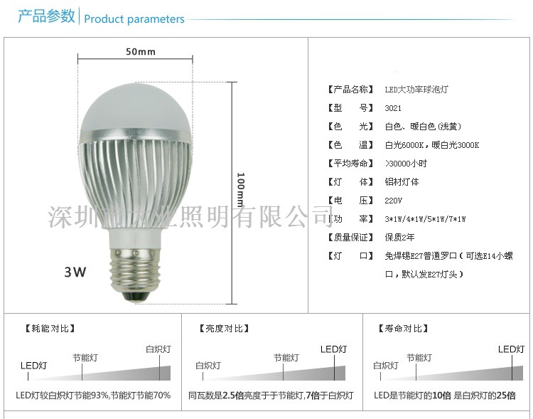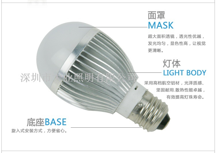 大业/普迪思 E27大螺口大功率3 WLED节能灯光源 LED灯泡球泡