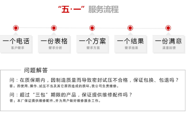 4、解决质量事故合情合理,最大限度减少用户损失,圆满解决质量纠纷,市场质量问题解决率100%,用户满意率98%以上。