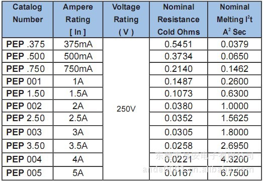3.18*7.1mm电阻式快断保险丝375mA-5A/250V-PEP 可替代Bussmann-MCRW系列,Littelfuse-473系列,Bel-MQ系列.