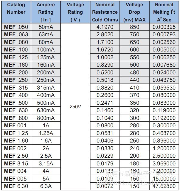 CQ功得圆柱型快断保险丝0.5A~6.3A--MEF