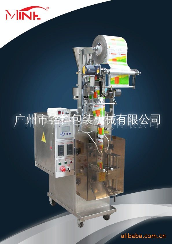 电脑全自动包装机、颗粒自动包装机适用于制药、食品、植物种子、化妆品、化工、塑料制品及特殊行业等产品中的松散状无粘性粗粉状、颗粒状物料的自动包装,如:冲剂、小丸、味精、白糖、汤料、麦片、碎茶、茶叶等,颗粒自动包装机可以在包装过程中自动完成计量、制袋、充填、封口、切断、计数、热压批号等全部工作,全中文显示,步进电机拉袋,电眼跟踪,光标定位,操作简单,外形美观等特点。