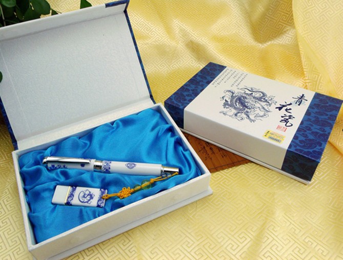 *工艺:高温烤花 *标配:青花瓷笔+青花瓷U盘+精美礼盒+手提袋 *包装规格:18*11.8*3.5CM
