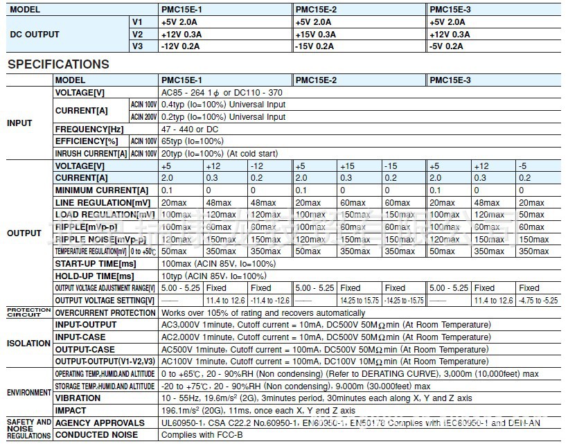 PMC15E-2 (COSEL) | 5V0.1-0.2A,-15V0.2A,+15V0.3A |