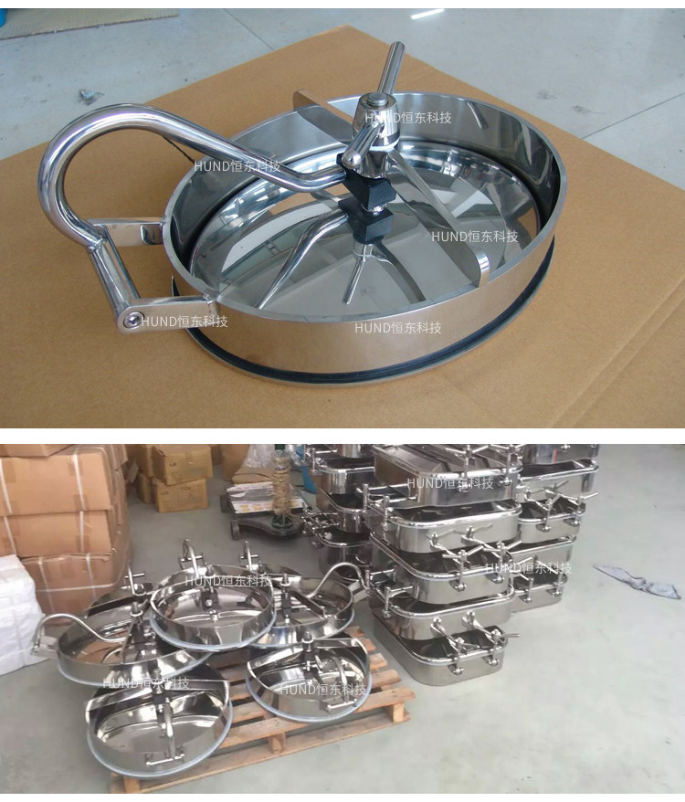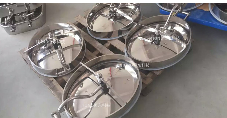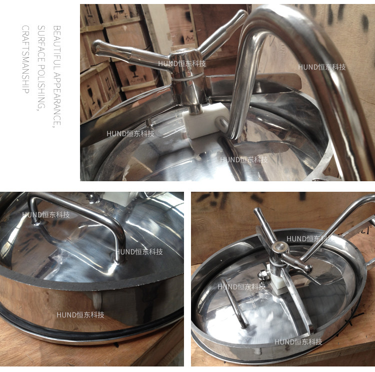 压力容器的人也均采用快开式结构,开启方便、安全,外形实用美观,有椭圆、圆形、四方形、承受压力0.05-0.5Mpa,材质为SUS304或SUS316L。
