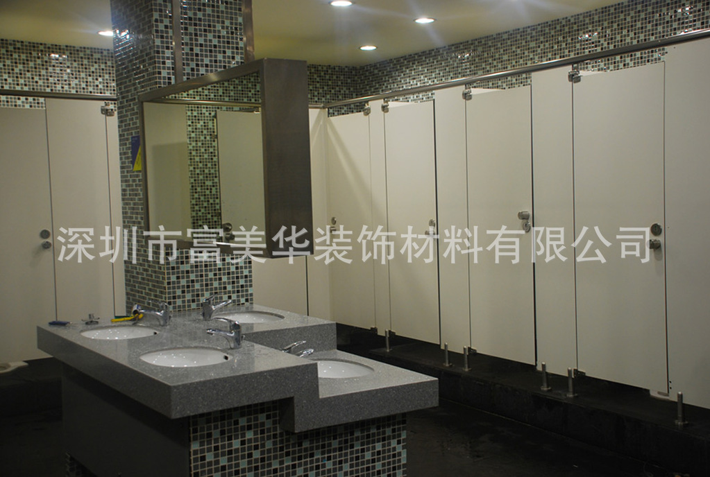 深圳市富美华装饰材料有限公司加工定做优质卫生间隔断,广泛用于学校,医院,工厂,车站,机场,展览厅,购物商场等地,富美华卫生间隔断色彩搭配丰富,做工精良,材质优良,采用不锈钢304配件更显高档,欢迎订购。联系电话:0755-89505006