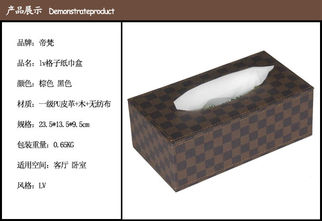 批发纸巾盒 帝梵 LV格子 皮革 长方形 高档 客厅 卧室 抽纸盒