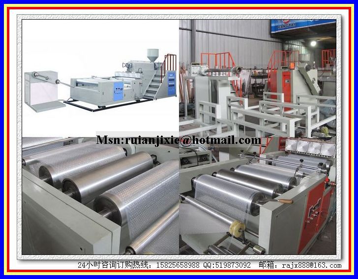 该机采用一次性成型工艺,生产效益高,制品质量好,机器结构设计科学合理,运行平衡可靠,操作维修方便。聚乙烯气垫膜(又称聚乙烯气泡膜)其中分为普通聚乙烯气垫膜和复合聚乙烯气垫膜机组,是当前普通使用的一种包装材料,不仅具有良好的减震性,抗冲击性,热合性,还有透明度好等优点,广泛用于家用邮政包裹,精密仪器,自行车,聚氨酯家具等多种包装。