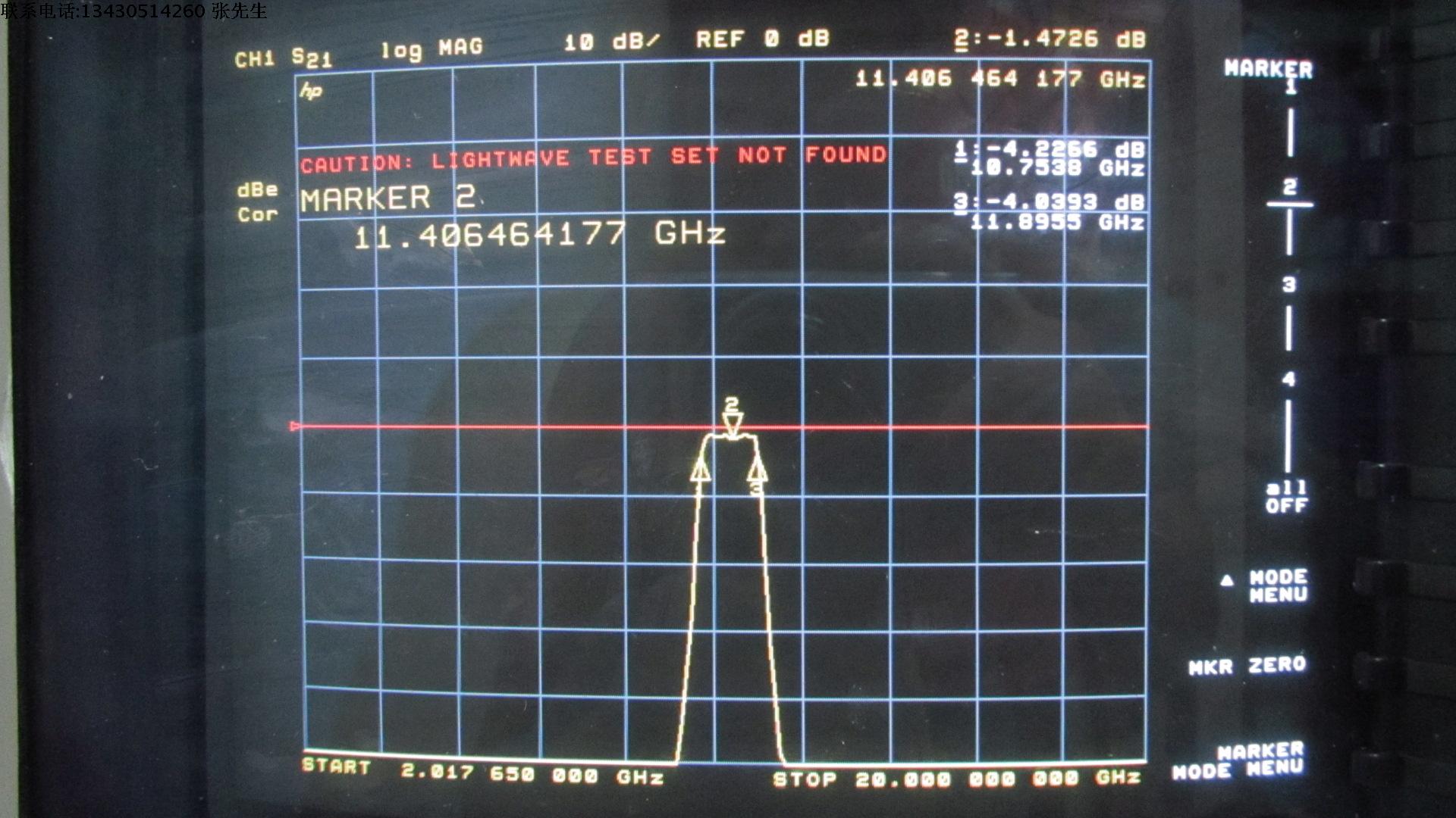 带宽通过频率: 10.95-11.8GHz 请看测试图
