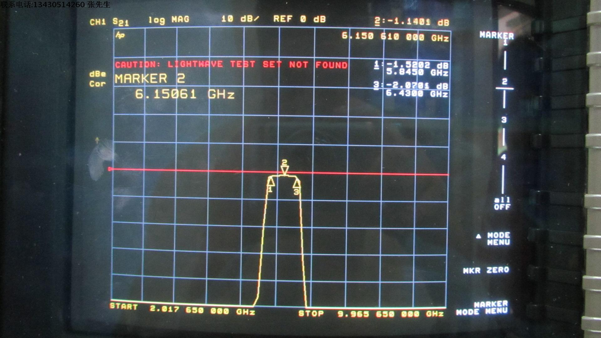 带宽通过频率:5.845-6.430GHz
