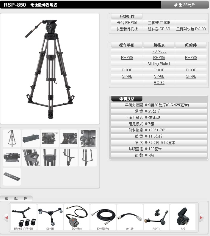 利拍三脚架RSP-850/RSP-850M碳纤三脚架带云台软包单向手柄
