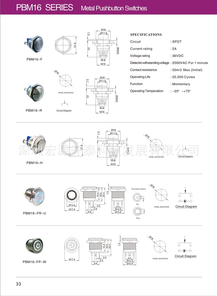 · 产品安装孔径分为10mm、12mm、16mm、19mm、22mm、25mm等规格