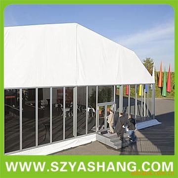 雅上帐篷主体框架为高强度特制中空铝合金结构,连接部位采用国际焊接技术。安装拆卸方便,可调节式基座可应对各种不同类型的场地, 篷房采用进口PVC专用篷布,该篷布具有超强承受力、防拉伸、防雨、防紫外线的良好性能,抗风、防火均达国际安全标准。