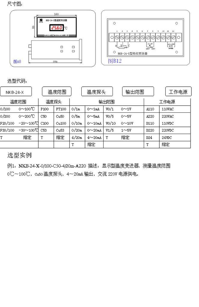 0℃~+100℃/0~5V、0℃~+100℃/4~20mA