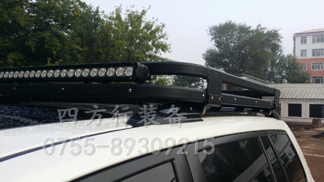 行李筐前段预留有DIY射灯安装位置,车友可根据需要在前段自行打孔固定射灯直接固。定在原车纵向行李轨上,整体降低安装高度,保证高度通过性。
