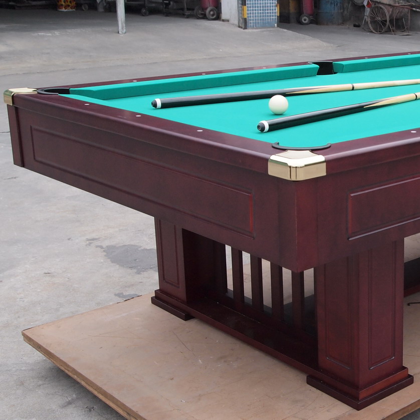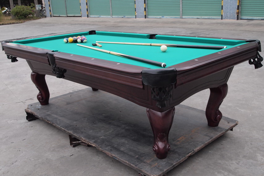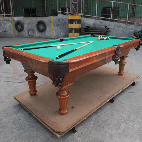 | 产品编号 | WP8002 | 产品名称 | 8尺美式高档家用台球桌 | 产 品 简 述 | 产品尺寸 | 2540*1410*780mm | 球场规格 | 2236*1118mm | 面(边)板 | 进口无节实木喷环保漆. | 台座部分 | 实木+进口夹板+实木皮。 | 脚部分 | 高密度板贴实木皮+实木拉花。 | 其它 | 三片式江西产青石板。布的色泽可选。 | 配件明细 | 57MM台产美式水晶球一副,木制三角架一个,球杆两支,巧克4个,台面清洁扫一个.架杆一支,球杆架一套。 | 包装 | 1。78个立方430/480KG |