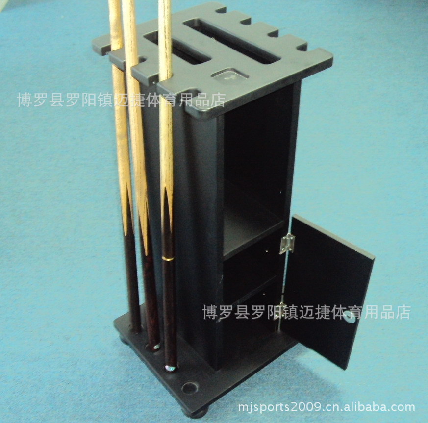 可放置8支球杆,三角架,菱形架,球及巧克之类台球桌周边常用品.产品为密度板喷漆.产品大小:长430*宽340*高810mm,产品包装重量:13KG!