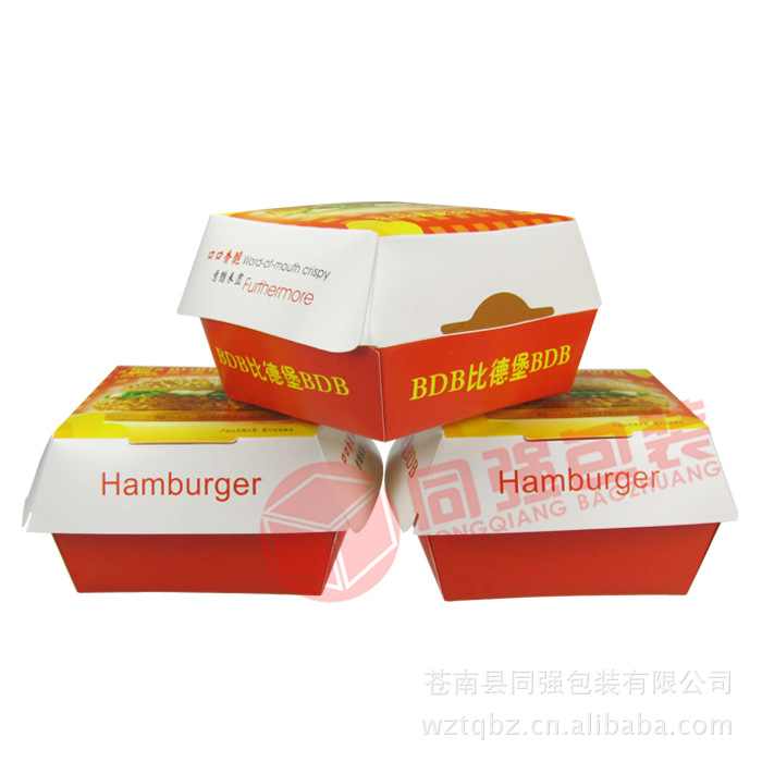 同强包装专业生产各种西式快餐系列包装,【汉堡盒】,全家桶,披萨盒、一次性豆浆杯、薯条盒,汉堡纸,炸鸡盒,鸡米花盒,蛋挞盒,爆米花盒,防油纸袋,可乐纸杯,全套洋快餐纸塑包装。对于各种特殊规格产品,欢迎客户提供规格或样品生产,详细产品说明如下: