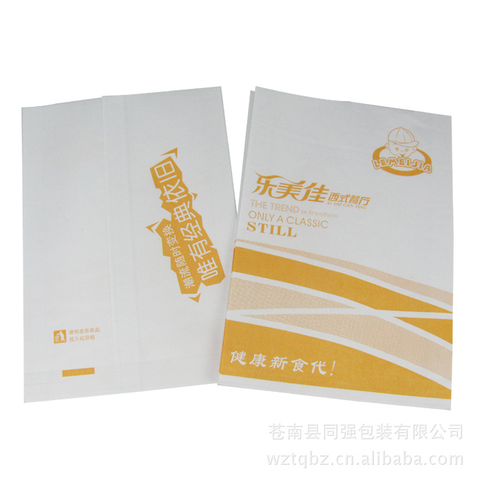 专业生产西式快餐食品系列包装主要厂家。 创业于2001年。经过十年的奋斗现有员工近100名,拥有专业技术骨干30余名,公司领导从事印刷包装18年,我们注重品质,以制造健康环保的包装为己任。我们重信,重德,做业务如受施舍 敬客户如敬父母,我们主张公平,公正,互惠互利,共同成长! 防油纸袋定做 防油纸袋食品袋 定做防油纸袋食品袋,食品纸盒、可乐纸杯、防油纸袋及新型,新颖的纸塑食品包装专业生产。公司产品材料选用食品级(无荧光剂)的白卡纸、淋膜纸生产做包装。“注重健康,制造好包装是我们不懈的追求”。