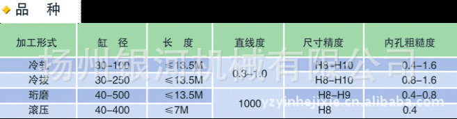 我公司主要生产:高精度冷拔钢管、珩磨钢管、切削滚压钢管。产品规格内径:Φ40-Φ250mm,长度≤13.5M,表面光洁度可达0.2μm到0.8μm,直线度:0.5/1000,内径公差:H8.