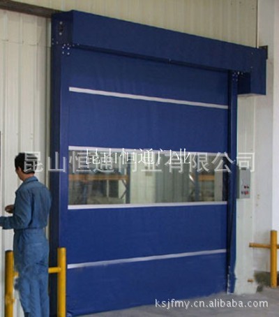 昆山恒通门业有限公司生产的快速门系列之快速卷门不但满足了其快速、安全、可靠的要求,更增强了使用场合的密封性、保温性、防虫、防静电、防紫外线、噪音和气味的隔绝性等性能。对节约能源、提高工作效率、改善工作环境起到了积极的作用。并对厂房车间的档次和企业形象具有相当的促进作用。快速卷门属于自动化控制设备,由门框架,PVC门帘,驱动电机,控制系统组成。通过自动感应装置控制下,随着工作人员和各类车辆的进出,能够迅速、灵活、无噪声地开启和关闭的卷帘门。经特殊处理的工业基布帘,不仅可以有效地防风、防尘、防潮、防湿、防虫,保持操作空间的清洁。同时还能够最大限度的降低由于操作空间和外部的温差而产生的空气对流,节省能源,创造理想的操作空间。恒通快速卷帘门主要性能特点门体表面材料:门框及门箱材质为2.0-2.5mm厚优质冷轧板钢构,优质烤、喷漆工艺处理;2.0-2.5mm厚不锈钢或3.5mm高强度6063抗氧化亚光银白工业铝合金立柱。门帘材料:欧洲原装进口高密度工业基布,厚度:0.8mm-1.2mm,其帘布独有的细小孔状纤维结构,具有更好的空气透气性。技术参数:拉伸强度(经/纬):5700/5100 N/5cm;撕袭强度(经/纬):900/80 N;使用温度:-30℃~+70℃;色牢度:7-8级;防火级别:法国标准NF-P92-503 M2或德国标准DIN 4102 B1 全透明PVC软片 厚度: 1.5mm-2.0mm 布帘颜色:滚筒式快速卷门有多种颜色可供选择,如:黄色、白色、兰色、红色或全透明等。透视窗可选矩形或椭圆形,增加了安全性及管理方便性能。门帘卷筒:帘布的卷筒部分采用具有独特切面形状的铝合金滚筒,能够有效的防止帘布因宽度过大,造成滚筒弯曲,变形的现象,确保帘布的安全运作。门帘设定:可以任意设定门帘的高度,加快门帘有效的运动速度。透明视窗:日本原装全透明PVC软片厚度1.5,可选矩形或椭圆形,增加了安全性透光性,美观性。密封性能:滚筒式快速卷门底端装有弹性的PVC基布气密封,它可与各种不平坦地面紧密结合,内部填充缓冲材料,提高其耐久性,门柱密封采用特有的双层毛刷增加了更好的密封性。独特的密封系统,高效的密封方式,最大限度地阻断冷热风的移动,防止外部灰尘、昆虫的进入,有效地隔绝气味、噪音的传播。动力性能:德国名牌SEW;IP55高频制动减速电机,三相380V/单相220V、功率为0.75KW-2.2KW、1500转/分钟,配合高效,低噪音,承载大负荷S4型新一代变速齿轮。抗风系数:门帘配有分段式铝合金抗风杆,抗风能力20m/S(最大可达30m/S),同时还具备布帘分段抽换更新等功能.恒通快速卷帘门12Kg /m,背带堆积式高速门60Kg/m 。控制系统: 日本三菱变频器,三菱PLC产品电脑编制程序组成,与各种常用保护装置兼容。IP55操纵盒与调高反射延时的自动和手动循环系统。启闭速度:滚筒式快速门启闭速度0.7m/s-2.1m/s,从底到顶一般在2秒钟左右(速度是电动卷闸门的20倍),车辆、行人无需等待,不构成障碍。允许频率:120次/小时,2次/分钟。控制方式:恒通快速卷帘门提供多种手动或自动控制系统以满足用户对快速门的开启或关闭方式的要求。 1.按钮2.拉绳 3.遥控4.地磁环 5.雷达 6.光电 7.联动互锁可选配件:红外安保系统;地磁感应系统;雷达感应系统;遥控开关;视窗;安全气囊,变频控系统,多樘门联动控制系统,防撞栏,拉绳开关,信号灯。复位结构:即使再宽的门,偶尔也会受到人或者车的碰撞,这会使操作受到干扰并带来昂贵的维修支出,使门在受到撞击后,无须任何特殊工具或技能使门在短时间内复原。安全性能: 基本配置中含有精密德国产绝对值编码器限位――严格控制高速运行带来的限位误差,如停电或遇强制外力(即自动切断电源),停止运行,且门体自动锁住,确保安全。门柱底端装有红外线安全装置,并且门体标配有红色警示灯,运行时起到警示作用。底部装有安装保护气囊,在关闭的过程中触及障碍物,立即反弹回升状态,急停按钮--控制箱安装急停按钮,在紧急情况下,可迅速停止关闭停电时附有手动遥杆可轻柔开启及关闭;更具有安全性、便利性能。工作过程:滚筒式快速门由开门传感器提供触发信号给控制系统,控制系统根据快速门的当前位置发出指令给变频器,启动驱动电机使门帘快速上升,车辆行人通过后门帘自动下降,关闭通道,直到下一个开门信号再次打开。服务与维修:无论何种用途,为获得最佳性能以及减少不必要的维修,需要定期进行维护。恒通门业公司的服务机构遍及各地,能够在最短时间内以最高效率为用户处理各种紧急情况
